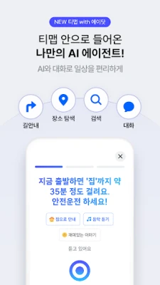 티맵의 새로운 AI 서비스와 함께 더 똑똑한 이동을 시작해보세요.