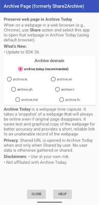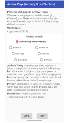 Archive Page (formerly Share2Archive) is an Android app that lets you quickly archive web pages using Archive Today.