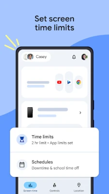 • Set screen time limits — Find the screen time that works best for your child. Family Link lets you set daily time limits, with school time and downtime schedules for their devices, so you can help your child find a healthy balance.