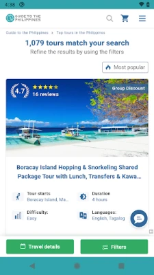 Welcome to the biggest travel marketplace in the Philippines. Explore the largest selection of tours and experiences available in the Philippines. Rent the cheapest car rental and find unique hotels and resorts. Get all the information you need from the most popular travel site in the Philippines. Download now to start planning your trip to the Philippines.